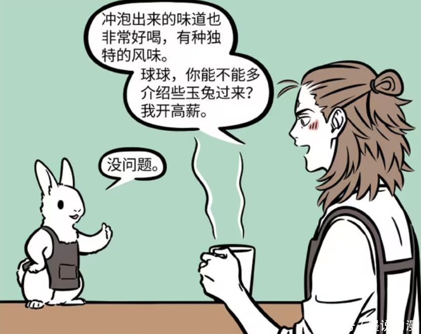 《非东说念主哉》漫画版中,杨戬的动物咖啡厅不仅有瓦陶陶,还有玉兔球球。球球因为不心爱被宾客抓手抓脚,是以运筹帷幄离职。杨戬让球球转作念咖啡师,没念念到它十分擅长。因为球球的进展,杨戬决定高薪挖东说念主开云kaiyun,让球球先容其他玉兔过来。这就导致月饼厂职工暴减,杨戬的咖啡品牌有契机上市。