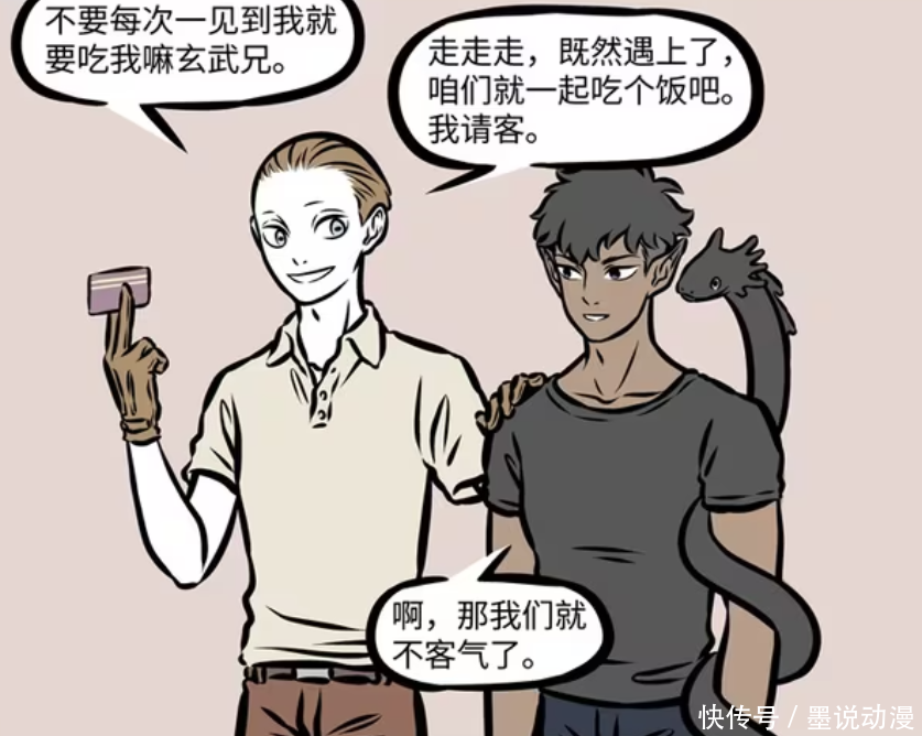 玄武兄弟在《非东说念主哉》漫画中,依然有不少现实,不外皆是穿插出现。这一次玄武兄弟在路上闲荡,遭逢了金蟾。只不外作念出响应的是玄武兄,从画面来看,等于把金蟾当成食品。毕竟蛇吃蟾蜍,这也算是生物链的天敌联系。