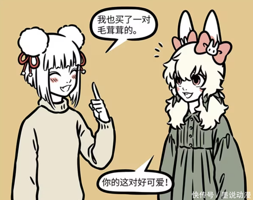 《非东说念主哉》漫画版中,推出合适兽耳东说念主群耳朵的蓝牙耳机,九月和小玉购买之后,看起来很可人。哮天固然也买了,但看起来并不合适。另外哪吒有双马尾形象出现,不得不说他什么发型齐能独霸。至于红孩儿,龙女也给他绑了新马尾辫。