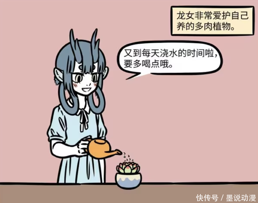 龙女可能受到不雅音影响,也启动养植物。不外龙女养的并不是兰花,而是多肉植物。表面上多肉植物很好赡养,也不需要每天皆浇水。龙女可能还处于三分钟热度期,是以每天皆会给多肉浇水。