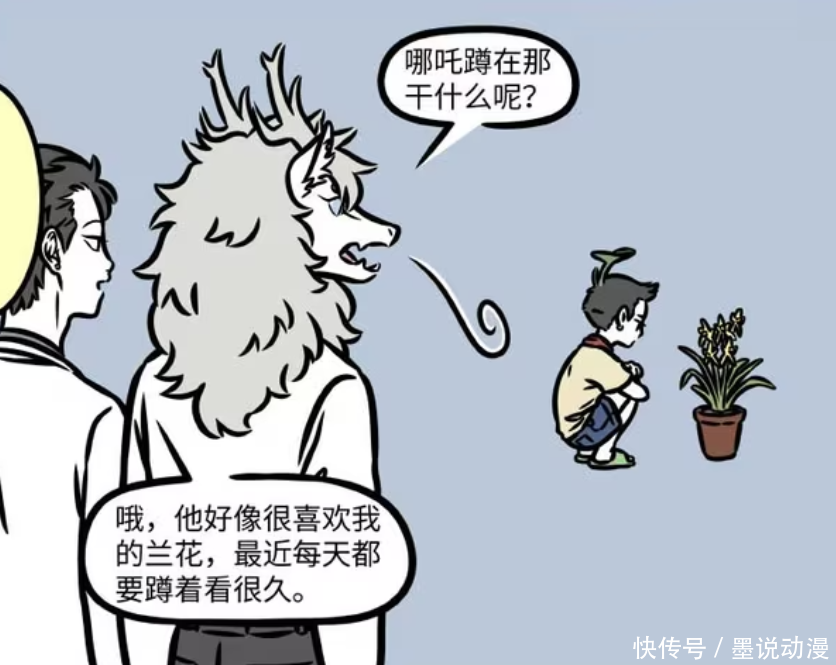 敖烈来到不雅音家,看到哪吒这样也有点意思。不雅音告诉敖烈,哪吒每天皆会花许多时辰蹲在兰花眼前,好像是可爱它才会如斯。不外事实并不是不雅音说得那样,仍是有点让东谈主大跌眼镜。