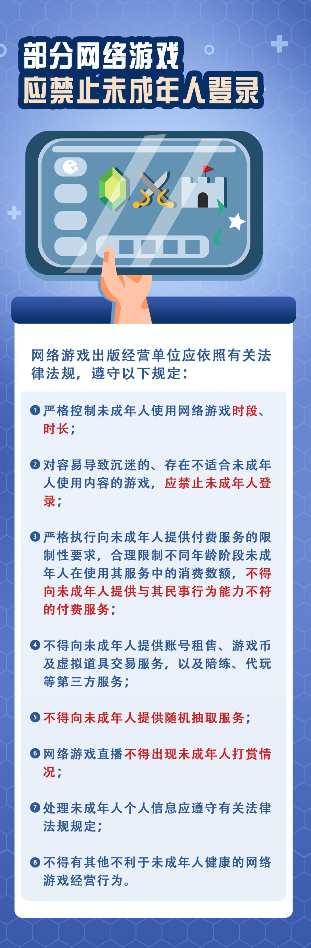 最近,国度新闻出书署就《网络游戏措置办法(草案征求宗旨稿)》公开征求宗旨,在网络游戏的出书筹谋、未成年东说念主保护等多方面建议具体条件。办法波及哪些保护孩子的履行?沿途来看↓↓