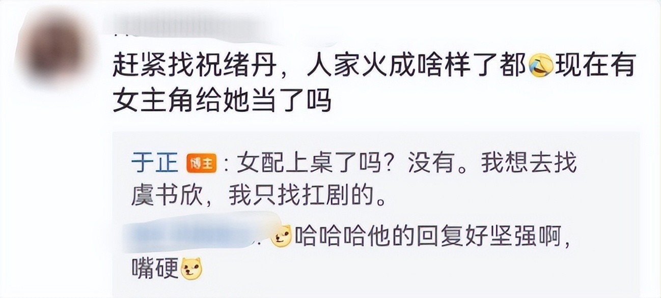 其时没过多久,祝绪丹参演的《长夜银河》播出,让巨匠没料想的是,这部剧竟成为“爆剧”,祝绪丹凭借女二号“慕瑶”得手出圈,这样的情况出现,有网友又去于正账号下留言:赶快去找祝绪丹,东谈主家火成啥样了皆,当今有女主角给她当了吗?于正回话:女配上桌了?莫得,我想去找虞书欣,我只找扛剧的。