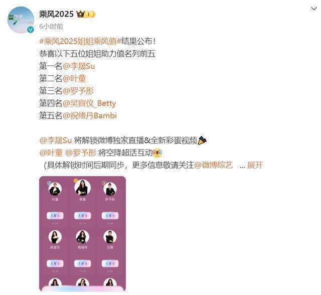 诸君亲爱的读者一又友们,不知说念你们有没关联注《乘风2025》这档节目呢?最近啊,官方然而放出了姐姐们乘风值排行的更新音信,这就像是一颗插足安闲湖面的石子,短暂激起了千层浪。毫无悬念的是,李晟荣登榜首,可确凿诱骗内行眼球的,却是那儿于倒数第一的姐姐,这内部到底掩饰着何如的故事呢?且听我渐渐说念来。