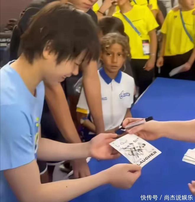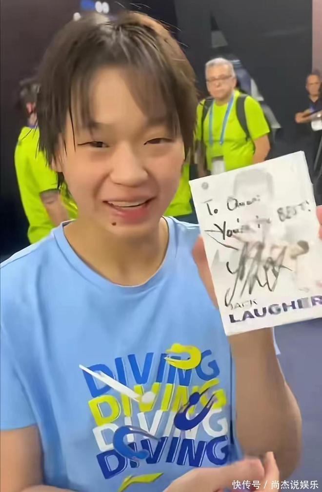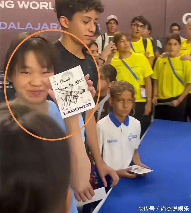 从现场画面不错看出,全红婵对拿到杰克·劳尔的签名充满期待。恭候签名时,她的视野牢牢锁定,嘴角长久上扬。