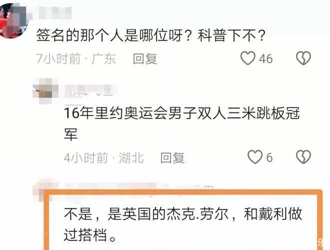 经网友披露,正本她要签名的对象是英国跳水怒放员杰克·劳尔,他曾在2016年里约奥运会上获取须眉双东说念主三米跳板冠军。看来,杰克·劳尔是全红婵心中的偶像,而此次追星,全红婵到手了!