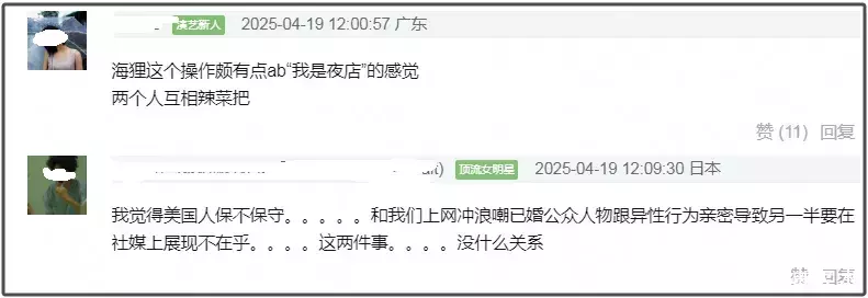 还有网友指出海莉的操作与杨颖的“我是夜店”有异途同归之处。那时,有爆料称黄晓明在夜店与一大群好意思女约会,当晚黄晓明发布微博称“我是黄晓明”,杨颖转发指摘自黑辱弄“我是夜店”力挺男友,杨颖这番矮化自我的说辞天然是为了帮黄晓明表露爆料,关联词也小瞧了我方。如今,海莉的行为如出一辙,都莫得把自我的感受放在第一位,仅仅为了周至男方的好看。
