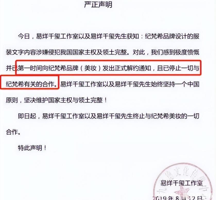 随后易烊千玺文书片面解约,绝对与纪梵希切割,将其形象钉在了“欺凌柱”上。天然曩昔的风云已历程去,但事实依旧存在,不会随时分消散。