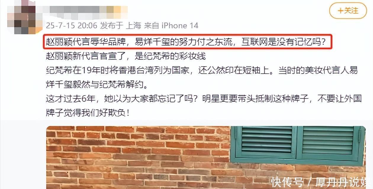 “赵丽颖代言辱华品牌,易烊千玺的竭力付之东流,互联网是莫得记念吗?”