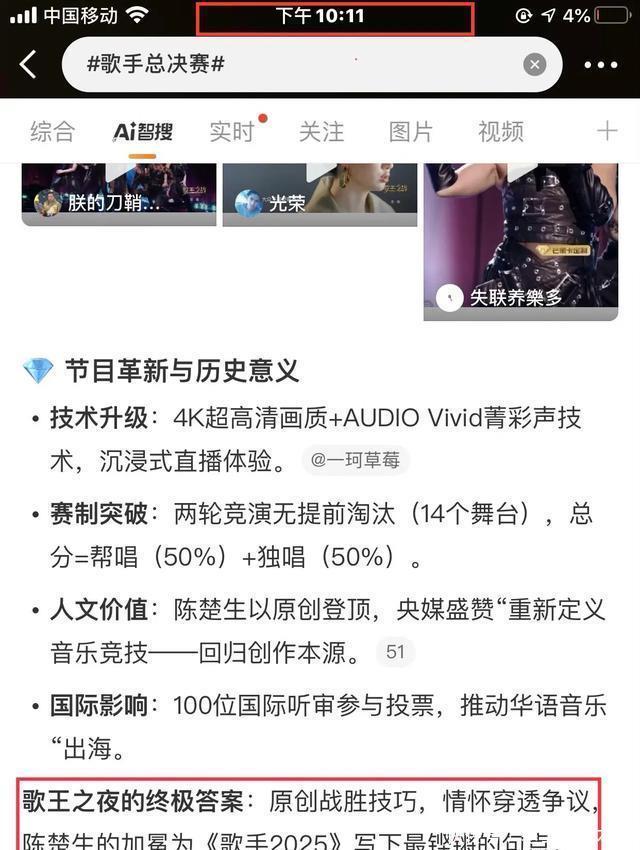 第一轮帮唱事后,从邡上了热搜。 第二轮原创歌曲《获奖之作》属于平常水平施展。歌虽顺耳,但不至于以断层上风拿下歌王。