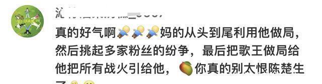 芒果在“捧杀”,咱们亦然受害者。 对节目组而言,争议越大,热度越高。 比赛甘休几天了,陈楚生的褒贬区如故骂声一派。过往黑料还被翻出。