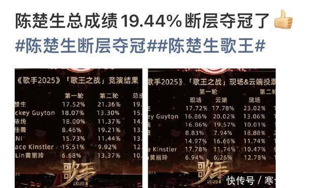 一派唏嘘声中,《歌手2025》画上了一个不算完满的句号。 这季节目开播以来,就饱受争议。 总决赛,贪念十足的李佳薇,实力轶群的黄丽玲,加上番邦铁肺歌手格格Grace、Mickey,本是剑拔弩张,极具看点。 没思到,节目组不走寻常路,绕开一众实力唱将,撇开为这季节目带来纷乱流量的单依纯, 告成把歌王的桂冠戴在了自家“亲女儿”陈楚生头上。