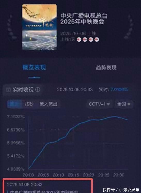 央视秋晚收视着手高达4.8,在晚上8点30分阁下高涨到最高点,径直破7。