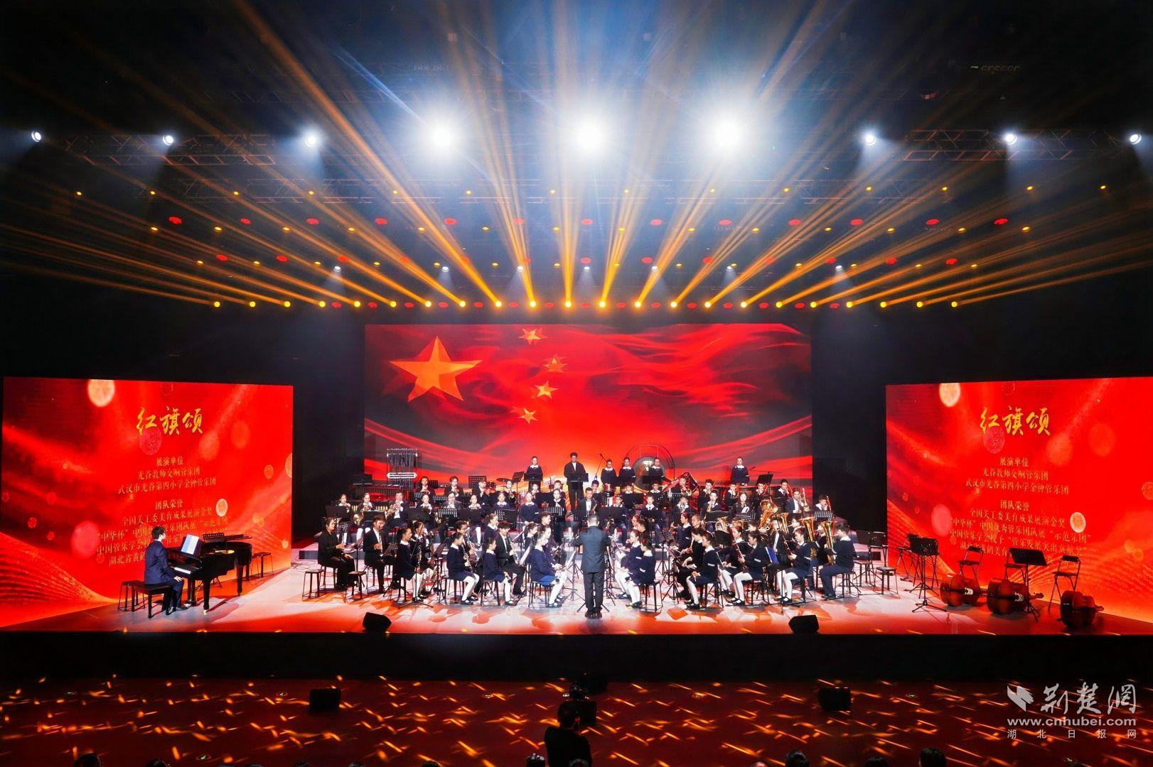 音乐会在一场高水平的管弦乐盛宴中拉开帷幕。光谷老师交响管乐团与武汉市光谷第四小学金钟管乐团聚会演绎的《红旗颂》以上涨旋律传承红色信仰;光谷四小金钟弦乐团带来的《龙船调》用灵动琴音展现土家风情;《阵势排除的岁月》则奏响了青春的热忱与奋斗的热情。