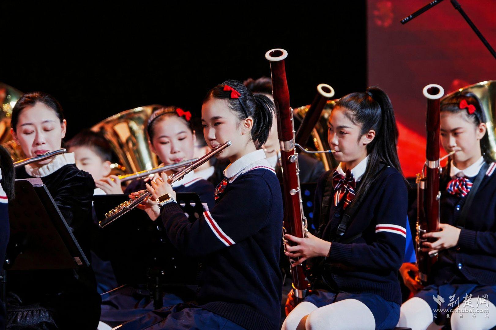 此外,武汉市光谷执行中学星辰管乐团的《戎马俑》以雄壮军号展现千古威风;武汉市光谷第二低级中学管乐团带来的《太空机器》形色了往日图景、《红星闪闪》彰显红色传承。光谷老师交响管乐团带来的《世纪序曲》和《我只在乎你》,或展现期间活力,或传递柔和。