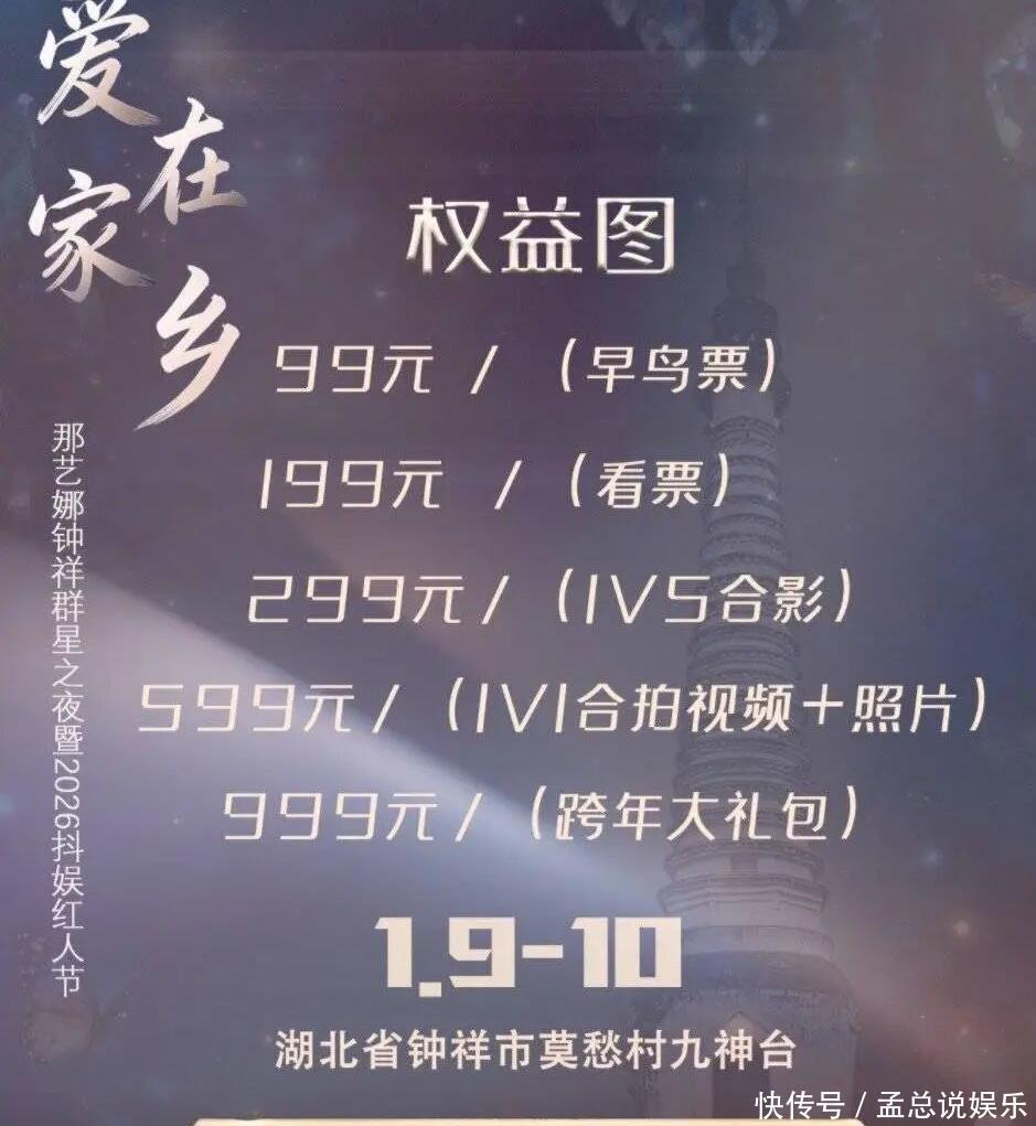 再翻翻他们的宣传决策,亦然挺拼的。节目定在来岁年头,票价从99块到999大元璷黫挑,念念见明星还能涨价合影、一双一拍视频,赚粉丝腰包里的钱确切少许没蒙眬。可惜当今热搜全给月旦声占领了,不知说念终末还能结束几成盈利意见?