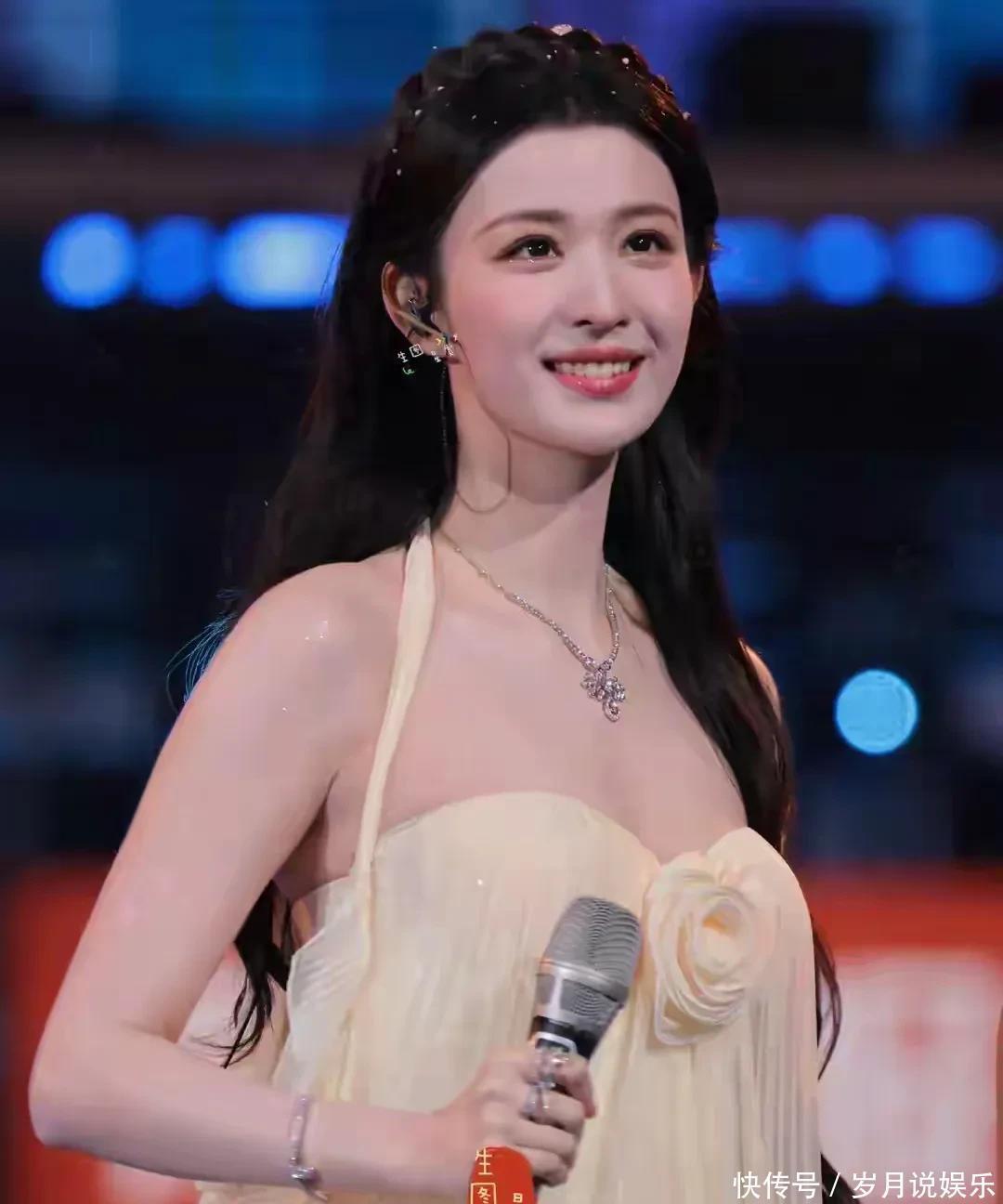 2026卫视跨年演唱会开云kaiyun.com,王楚然的一组舞台生图倏得在网上炸开了。她穿了件淡黄色挂脖礼裙,裙身带褶皱,胸口还别着朵立体小花,天鹅颈和直角肩一下子就显出来了。