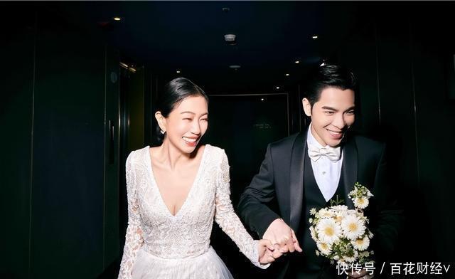 另一套婚服look里,林有慧穿上了拼色抹胸婚纱,老萧则是一袭玄色西装,鸳侣俩甘好意思对视,这个角度看,林有慧和老萧真的是配一脸有木有。