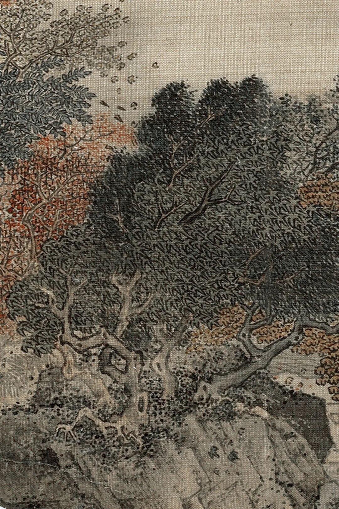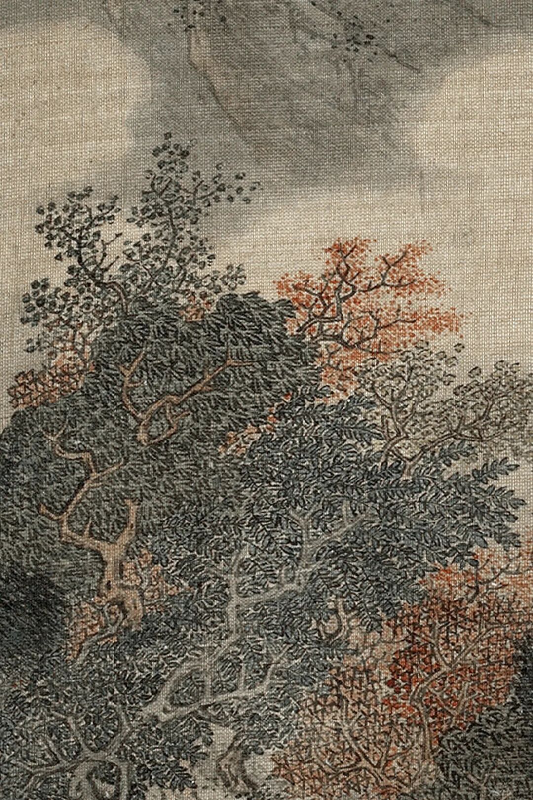 整幅画用笔从简,莫得繁复堆砌,浅浅墨色晕染风雨雾气。几笔淡墨,就画出摇风骤雨的压迫感,也画出逃一火歇脚的舒缓。