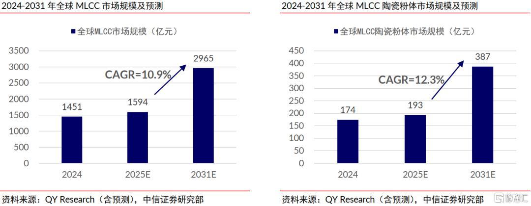 2)MLCC粉体:凭据QY Research和中信证券测算,2025年内行MLCC陶瓷粉体市集鸿沟为193亿元,在配方粉专科市鸠合日好意思厂商的统统份额跨越80%;