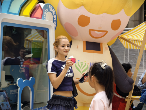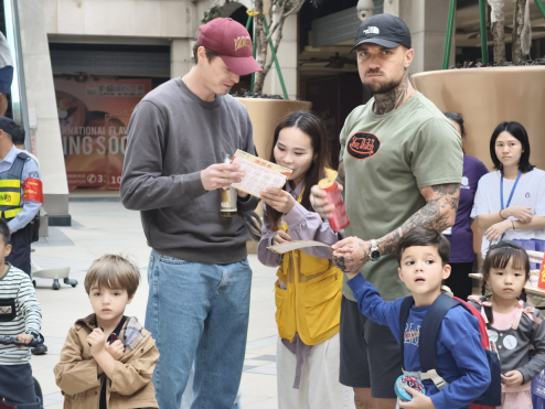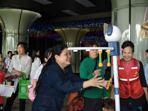同步进行的外洋邻里节集市相似东谈主气皆备。由社区合资东谈主主导的15个摊位涵盖跨文化换取、非遗体验、便民行状与科技互动。进口处,志愿者指引住户领取游玩卡,有序参与各项行动。科技体验区,自动化冰淇淋机和咖啡机器东谈主无邪运作,得志多元需求,科技感与幸福感皆备。
