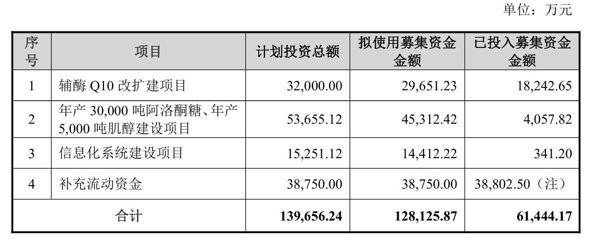 2025年8月20日,金达威向不特定对象刊行可转变公司债券,召募资金总和12.92亿元,扣除各项刊行用度后,实践召募资金净额为12.81亿元。按彼时商量,上述近13亿元资金将被用于辅酶Q10改扩建名堂、糖醇名堂、信息化系统诱骗名堂以及补充流动资金。