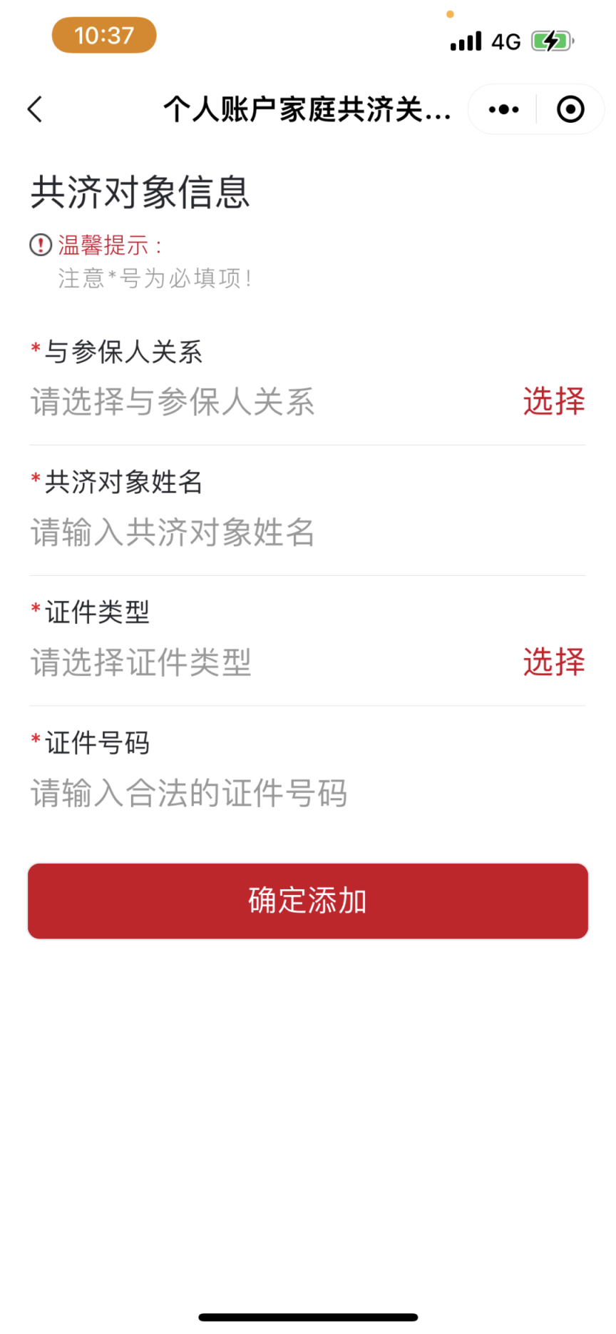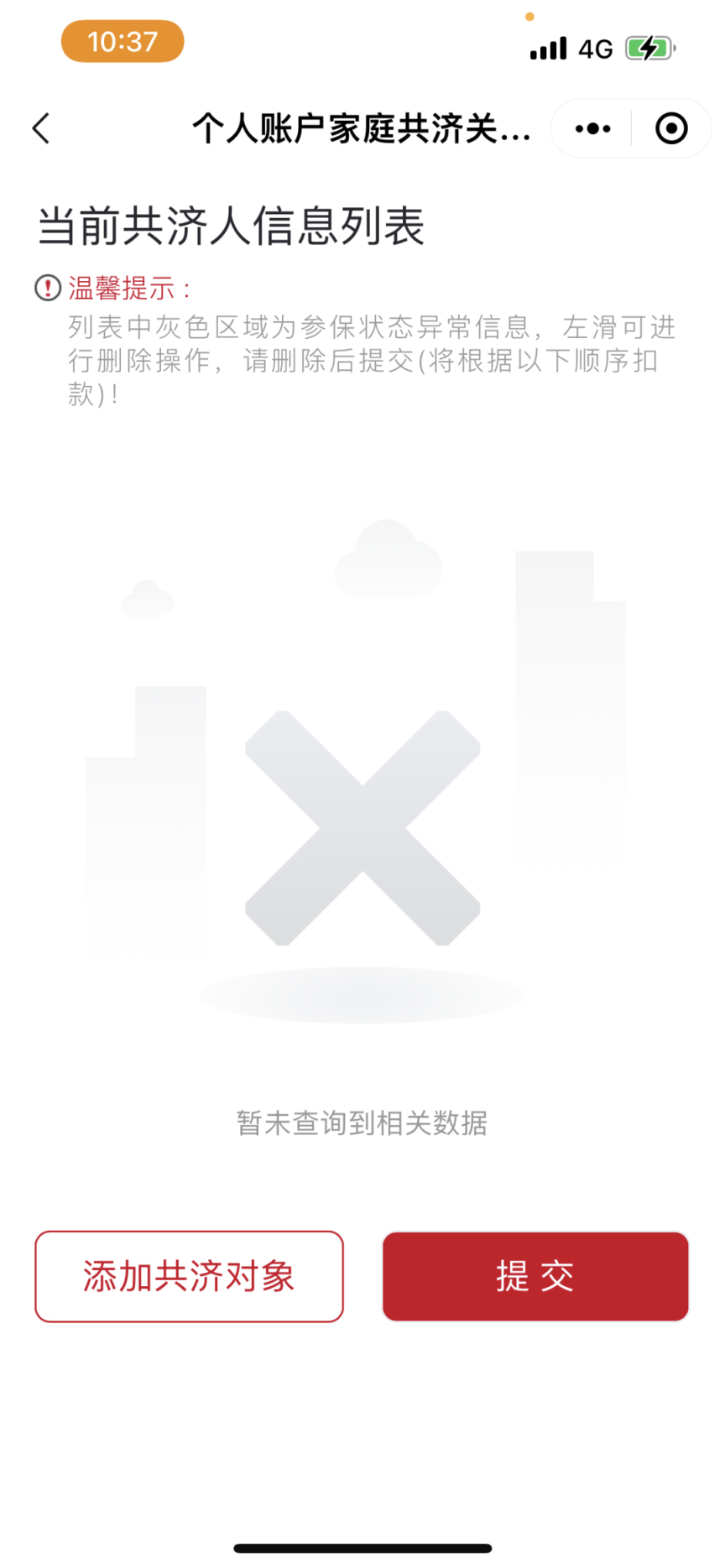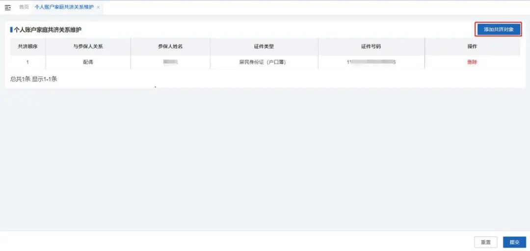 2.点击“添加共济对象”输入身份信息后点击“细目添加”,证实信息无误后请务必点击“提交”,共济对象即添加收效。