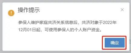 3. 稽察“操作指示”:参保东谈主关心家庭共济辩论信息后,共济对象于2022年12月01日起,可使用参保东谈主的个东谈主账户资金。点击“细目”按钮。